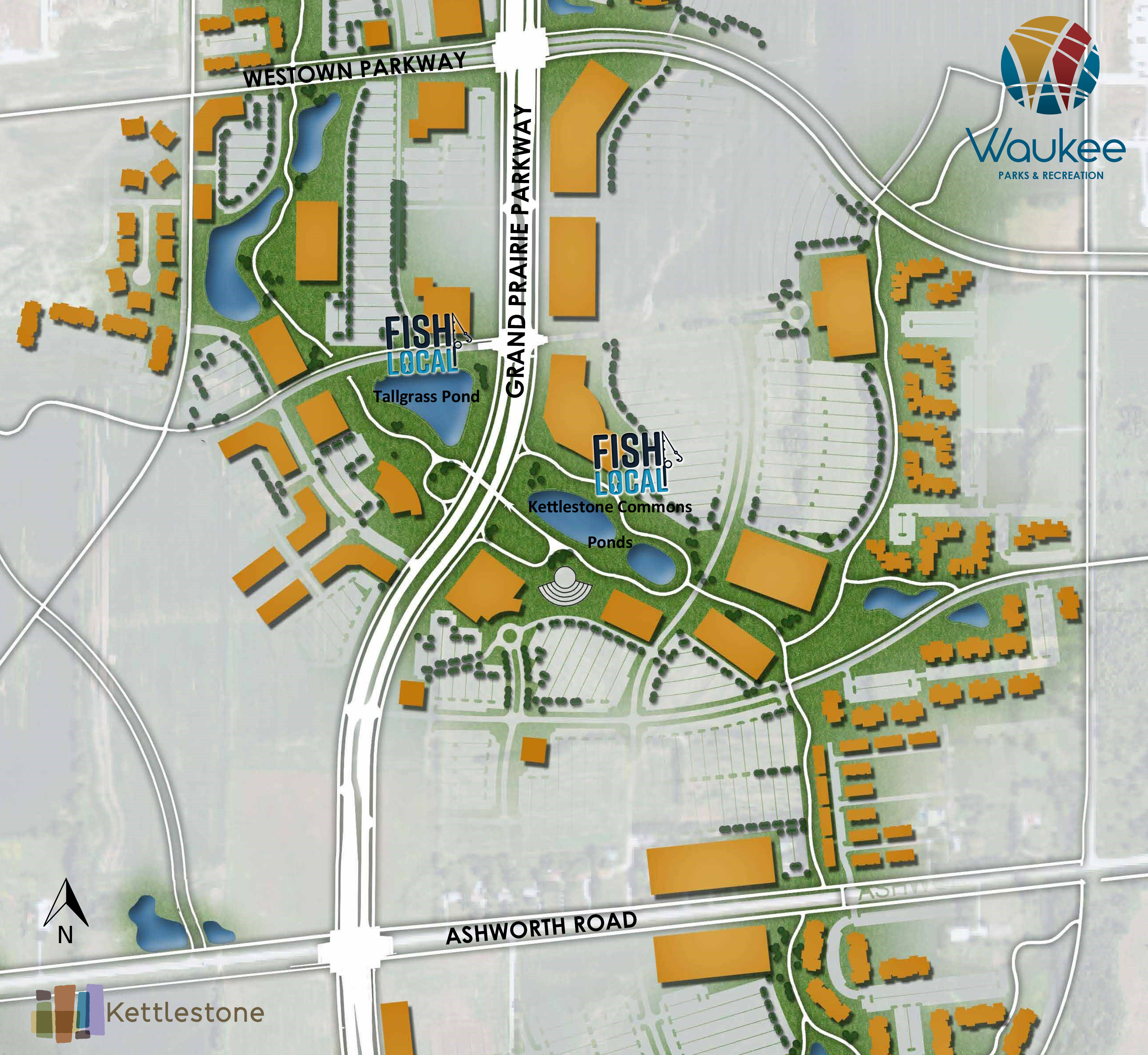 Fishing is only permitted on the City-owned 1) “Tallgrass Pond” 2) “Kettlestone Common Ponds” and 3) Triumph Park Pond between sunrise and sunset, subject to the following rules and conditions: